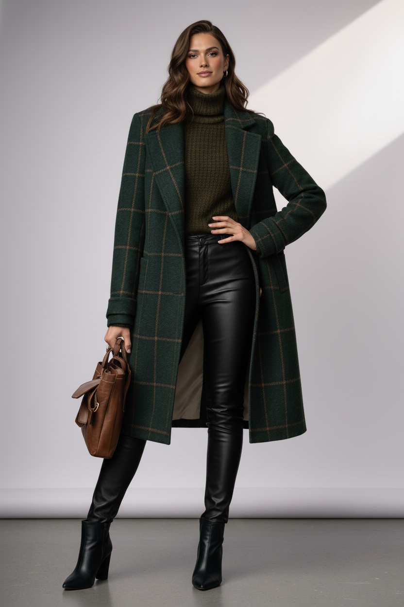 Elegancia atemporal del estampado de cuadros: Un refinado diseño de cuadros combinado con una solapa estructurada crea un look sofisticado y elegante al instante.