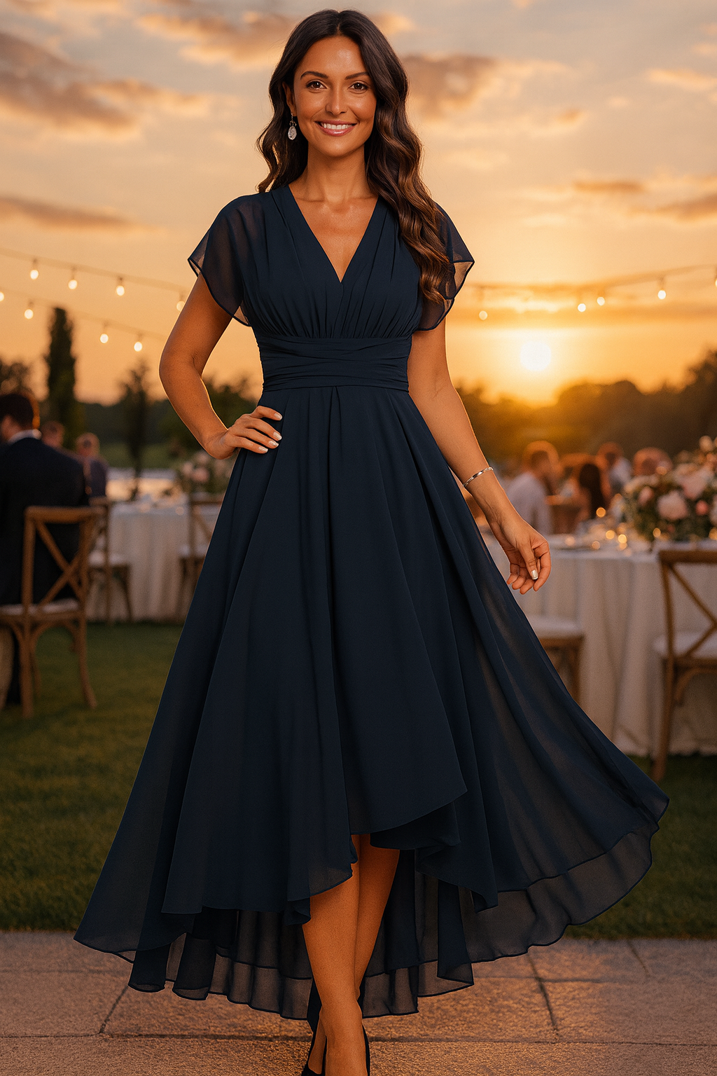 Janire – Vestido de noche fluido con escote en V – Encanto femenino, elegancia sin esfuerzo